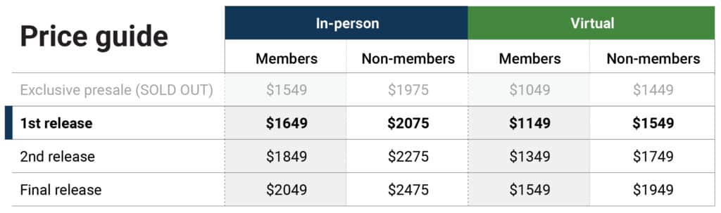 Add the live stream and the full recording to your booking to catch every main conference session in real time or on-demand for up to six months after the event. Perfect for attendees wanting flexibility and full access.